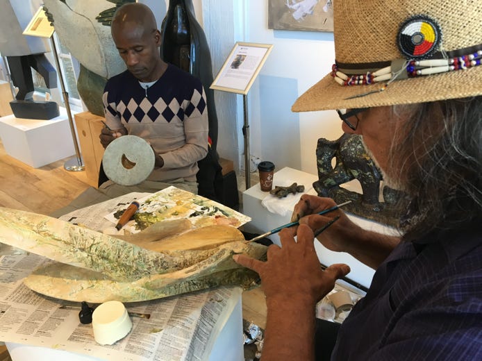 With renowned Shona sculptor Dominic Benhura, of Zimbabwe, working on a joint project as featured artists at Ukama Gallery