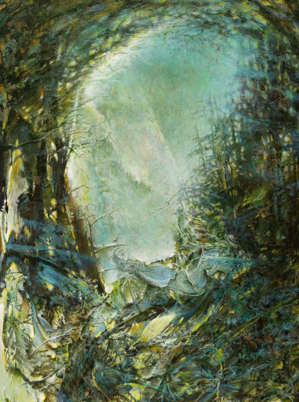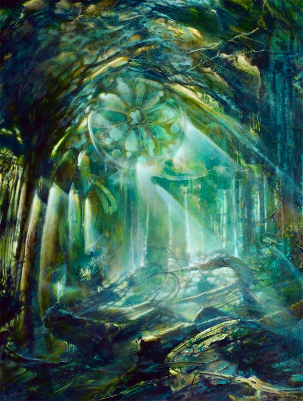 The paintings and sculpture are the embodiment of Visions, of seeing in a Sacred Manner, many have been with me much of my life. There is never a time when I face a blank canvas, at a loss as to what to paint. The Visions are so many that they fill my mind. Like pebbles on a beach, I can lift each up, turn it, look at it from all sides, and decide if today is the day to bring this one into the world. Sometimes one particular Vision will call out, wanting attention, demanding to be brought to life.